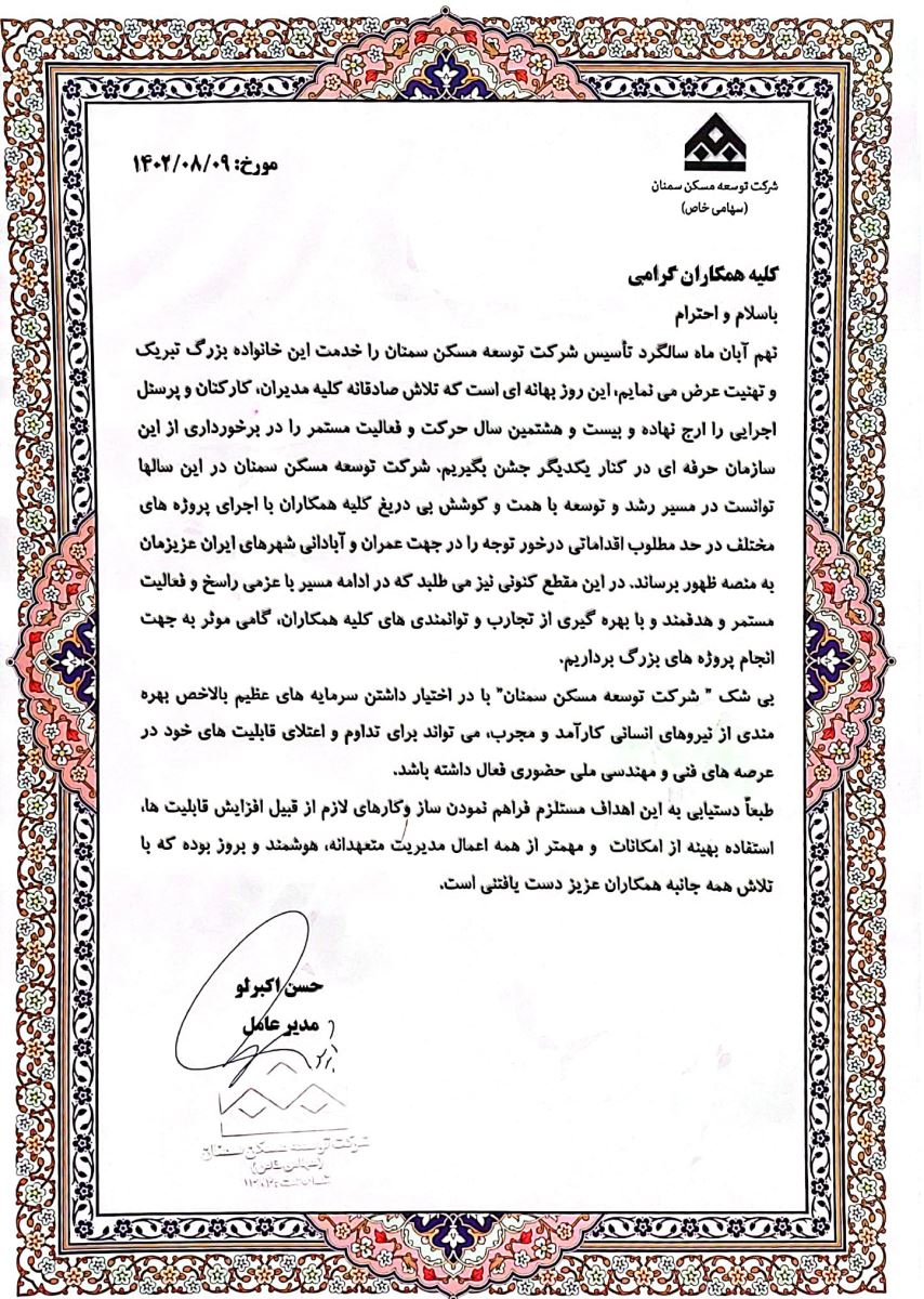 توسعه مسکن سمنان بیست و هشت ساله شد.